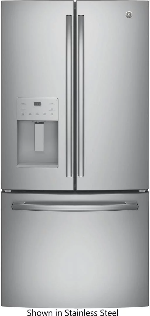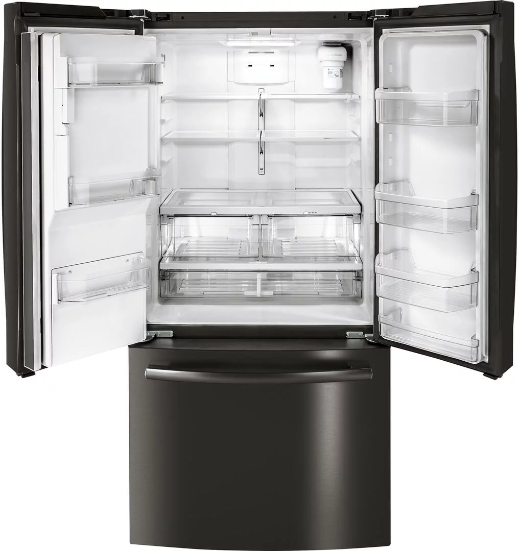 "GE Black Stainless Steel GYE18JBLTS 33"""" Counter Depth French Door Refrigerator with 17.5 cu. ft. Capacity"